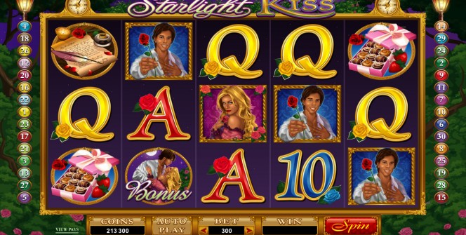 ‘Starlight Kiss’ video slot is a romance style video slot and with 5 reels and 243 winning combinations, the game is a new addition to the portfolio of Microgaming online casinos.