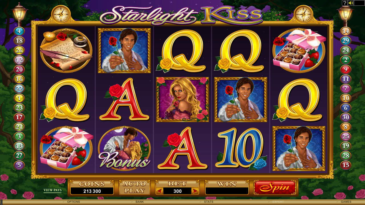 Designed against the backdrop of starlit gardens, the central theme of the game revolves around romance. The symbols showcased on this video slot include lover’s letters, chocolates, red roses and beautiful mansions with private gardens illuminated with starlight.
